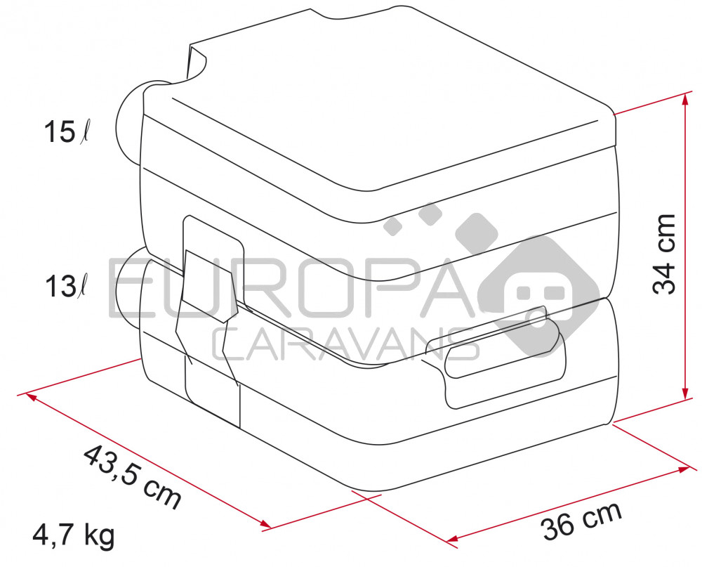 De Fiamma Bi-Pot is een simpel maar sterk draagbaar toilet met doorspoelfunctie. Eenvoudig te reinigen. Zeer compact en compleet te demonteren, inclusief het schuifventiel voor een grondige en algehele reiniging. Stevig en solide handvat op de ondertank wat het vervoeren vergemakkelijkt. Grote afvaltankdop en geen losse slangen. Het legen is eenvoudig en hygiënisch, geen vervelende verstoppingen. De boven- en ondertank worden gekoppeld met behulp van handige klemmen aan de zijkant van de Bi-Pot.