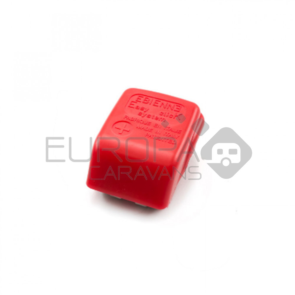 Accupoolklem met snelsluiting voor het aansluiten en loskoppelen van de accu. De kunststofdeksels beschermen de accupolen tegen roest.