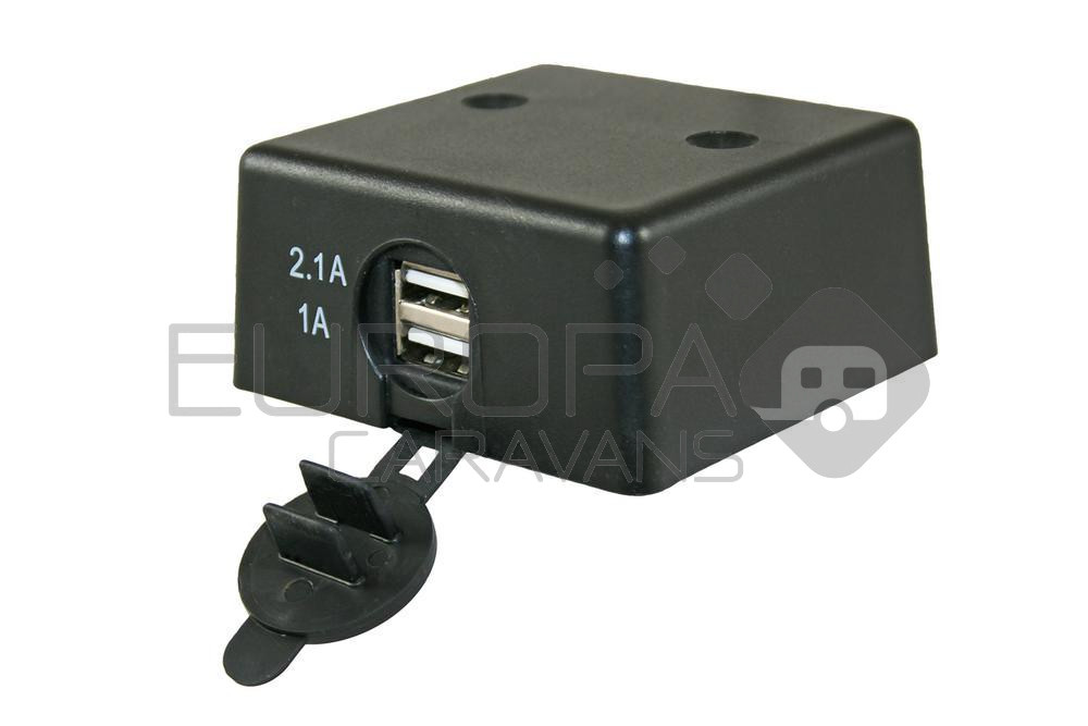 Dubbele USB stekkerdoos 2.1A /1.0A opbouw met klepje. Geschikt voor oa iPhone, iPad