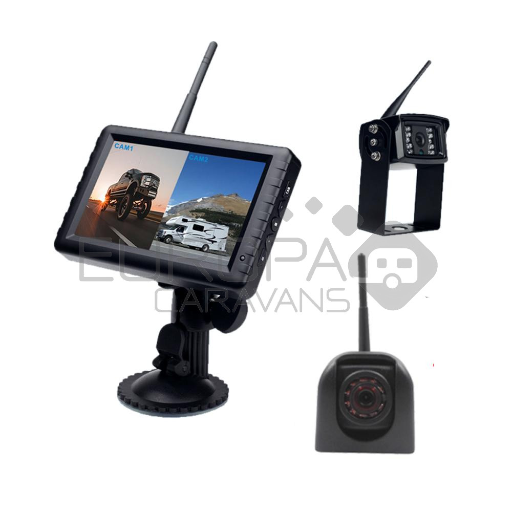 De draadloze achteruitrijcamera wordt op de caravan gemonteerd en wordt meteen met het beeldscherm digitaal verbonden. Zodra de caravan wordt aangekoppeld, activeert de camera gelijk. De camera is waterdicht en infrarood. 12V aansluiting.