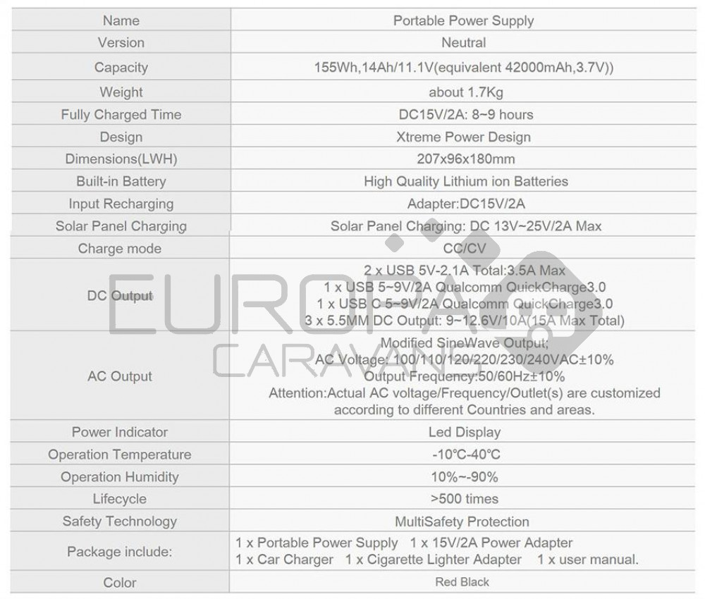 Of je op de camping staat, gaat varen of een andere outdoor activiteit onderneemt, met de Portable Power Supply ben je niet meer afhankelijk van netstroom. Door de verschillende outputs is deze Portable Power Supply te gebruiken voor USB, DC of (kleine) 230V apparaten. Je kunt langer gebruik maken van je laptop, lamp of andere (kleine) apparaten wanneer er op dat moment gebrek is aan stroom.