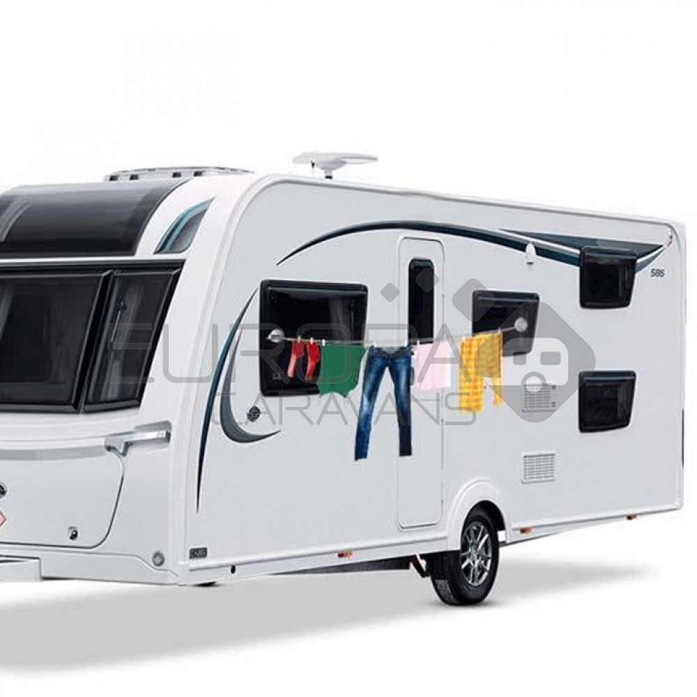 De waslijn is eenvoudig te monteren op een vlakke caravan- of camperwand door middel van de 2 zuignappen. De drooglijnlengte is 4 meter. 6 wasknijpers worden meegeleverd. Maximaal toelaatbaar gewicht op de drooglijn is 5,5kg.