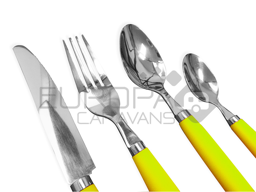 Een 16-delig bestekset bestaande uit 4 messen, 4 vorken, 4 lepels, 4 theelepels. Materiaal: ABS Soft Touch Finish, Edelstaal.