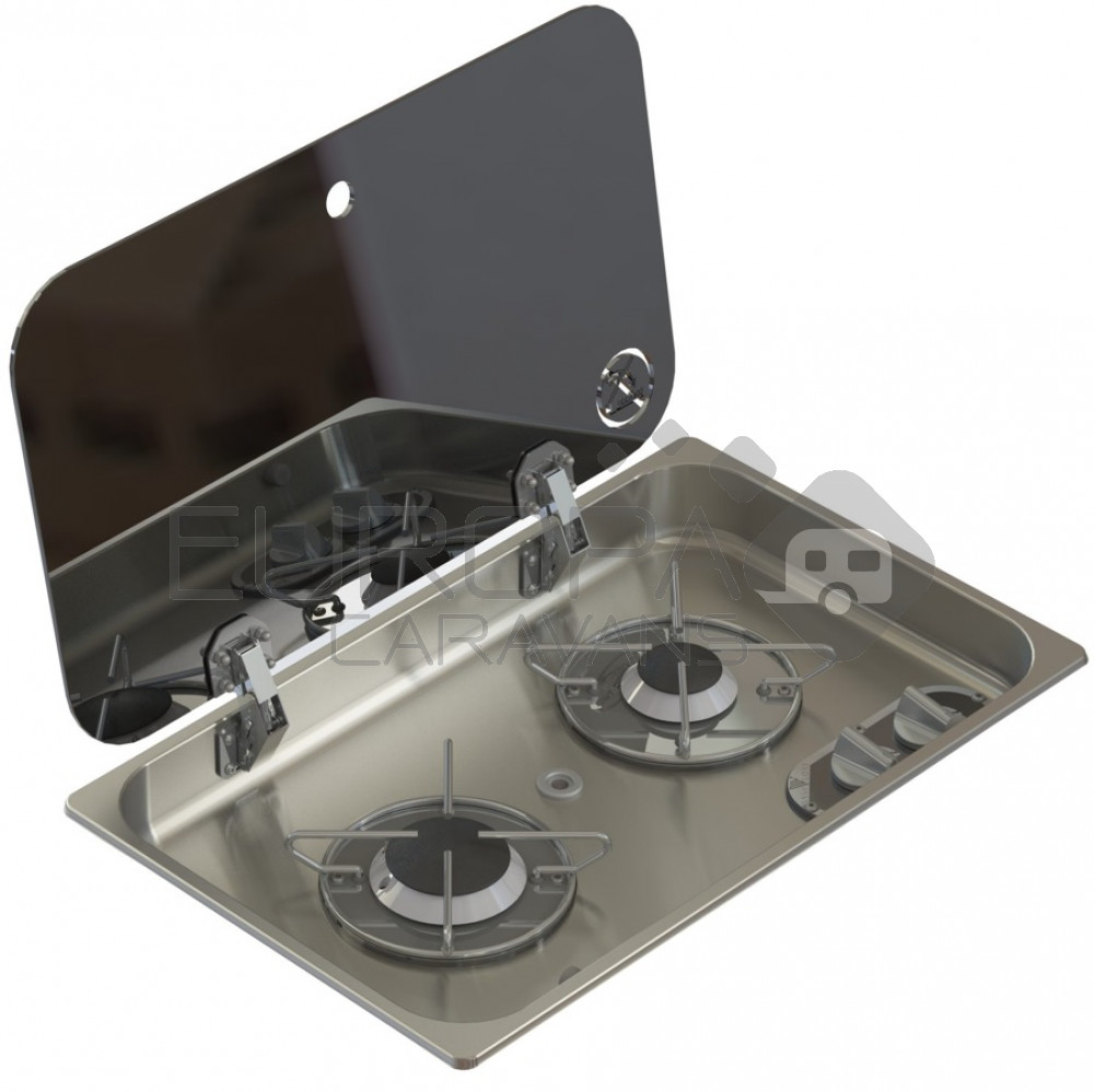 RVS Inbouwkookplaat met fraai afgewerkt glazen deksel. Uitgerust met 2 branders.