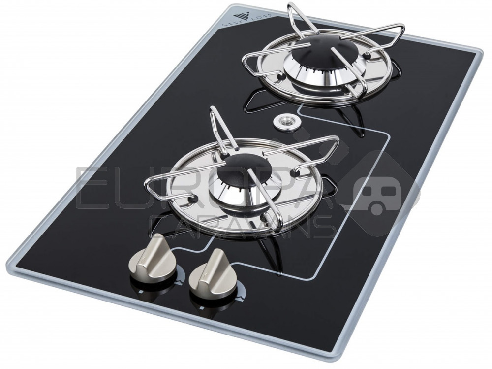 Kookplaat van 8mm zwart gehard glas. Uitgerust met 2 Branders.