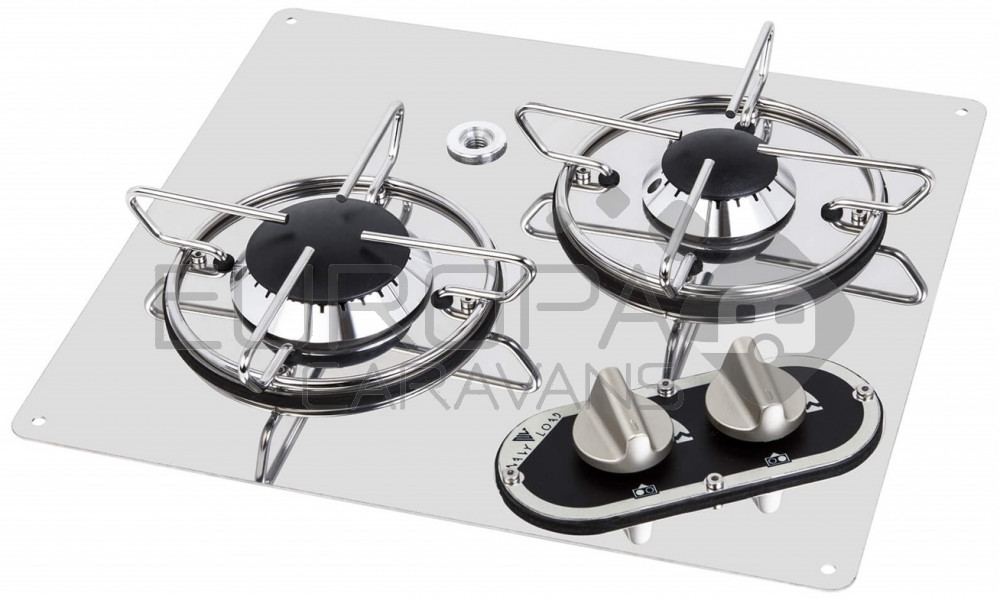 RVS platte kookplaat. Uitgerust met 2 branders.