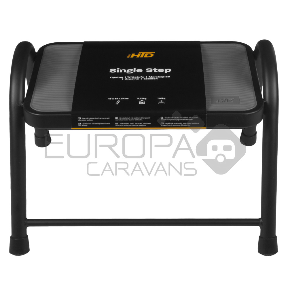 Enkele opstap met sterk en stabiel zwart frame en grijs anti-slip rubber. Vergemakkelijkt het instappen van het voertuig. Plateau: 38x26cm Maten van de opstap: 43x30xH26/31cm