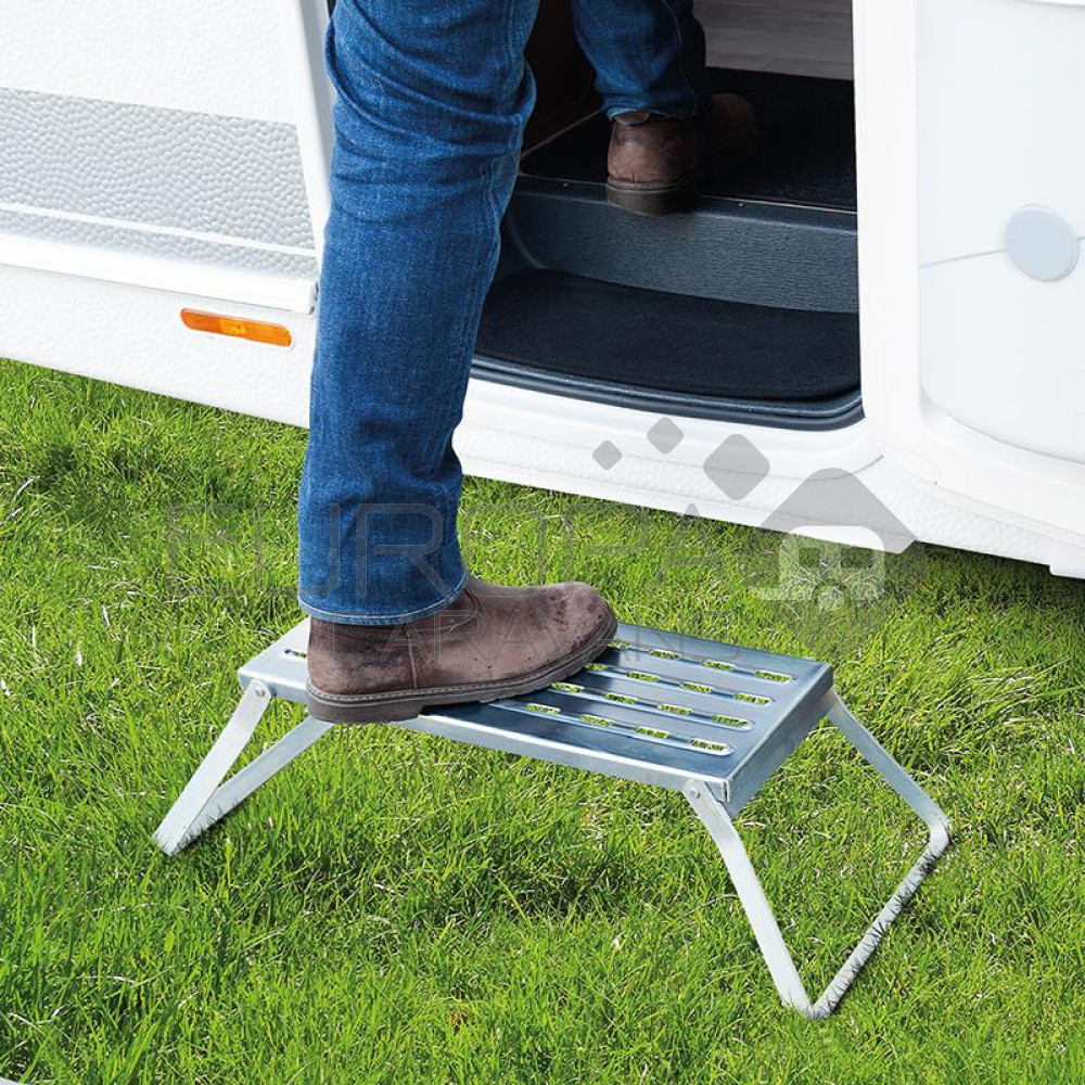 Inklapbaar metalen opstap met geprofileerd opstapvlak.