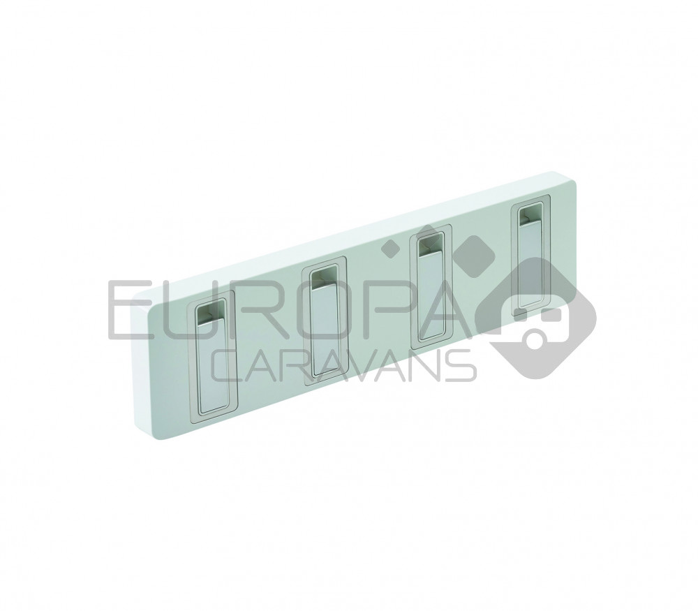 Kapstok met 4 uitklapbare haken. De witte grondplaat met chromen haken geeft een fraaie uitstraling.