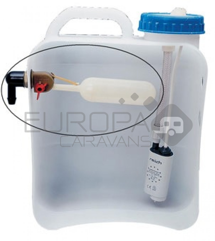 Flottersysteem, aan te brengen in elke watertank of jerrycan. Aansluiting aan het waterleidingnet tot 6 bar. Tevens drukreductie en houdt de waterstand op niveau. Via dompelpomp of drukpomp tapt u water af naar het bestaande caravansysteem. U kunt dit systeem rechtstreeks aansluiten op de verzorgingskast COLORADO. Op deze manier wordt de druk gereduceerd tot 0,7 bar. Indien u geen vaste wateraansluiting heeft, kunt u het water gebruiken zoals u dit altijd heeft gedaan.