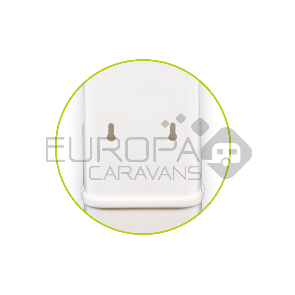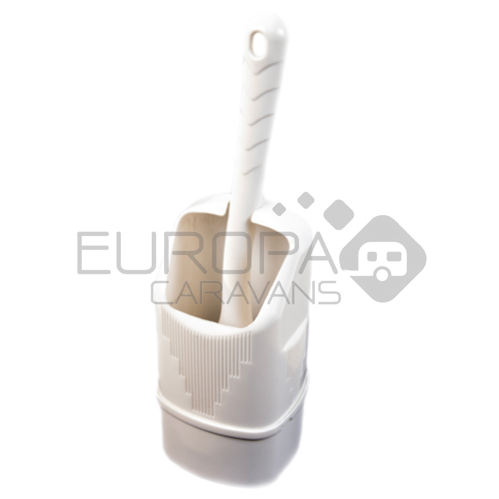 Compacte toiletborstel, speciaal ontworpen voor caravan, camper en boot. Voorgeboord voor wandmontage. Afmeting borstel: 24cm. Afmeting houder: 16x7.9x6.8cm.