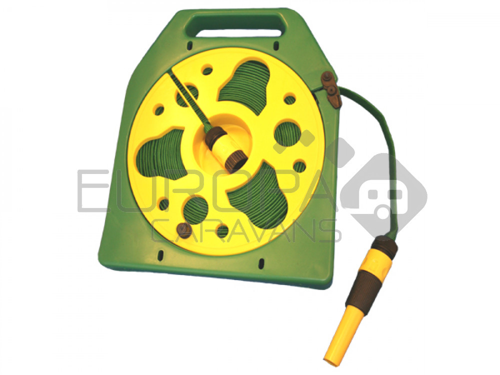 Waterslanghaspel van 15meter met regelbare spuitmond.