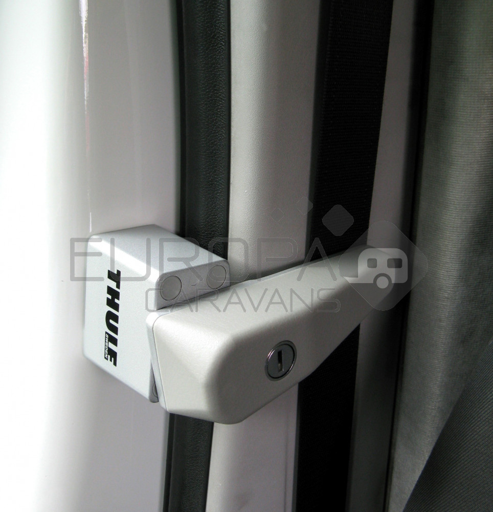 Slimme oplossing: sluit de cabinedeuren vanaf de binnenzijde Knap ontworpen met een afgeronde vorm en een kleur die aansluit bij het interieur van uw Van. Wordt gemonteerd aan de binnenzijde van de cabine. Met sleutel afsluitbaar. Materiaal: Hoogwaardig gepoederlakt aluminium. Gewicht 0,45kg per stuk. Set à 2 stuks.