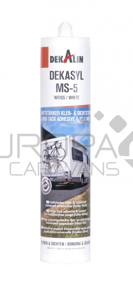 Dekasyl MS5 is een sterkere verlijmende-en afdichtingskit soort als de MS2. Deze wordt gebruikt om bijvoorbeeld vaste ramen te verlijmen. Blijvend elastisch. UV bestendig. Binnen enkele minuten nog te corrigeren. Te leveren in kokervorm of in worstvorm. Wordt o.a. gebruikt bij Kip.