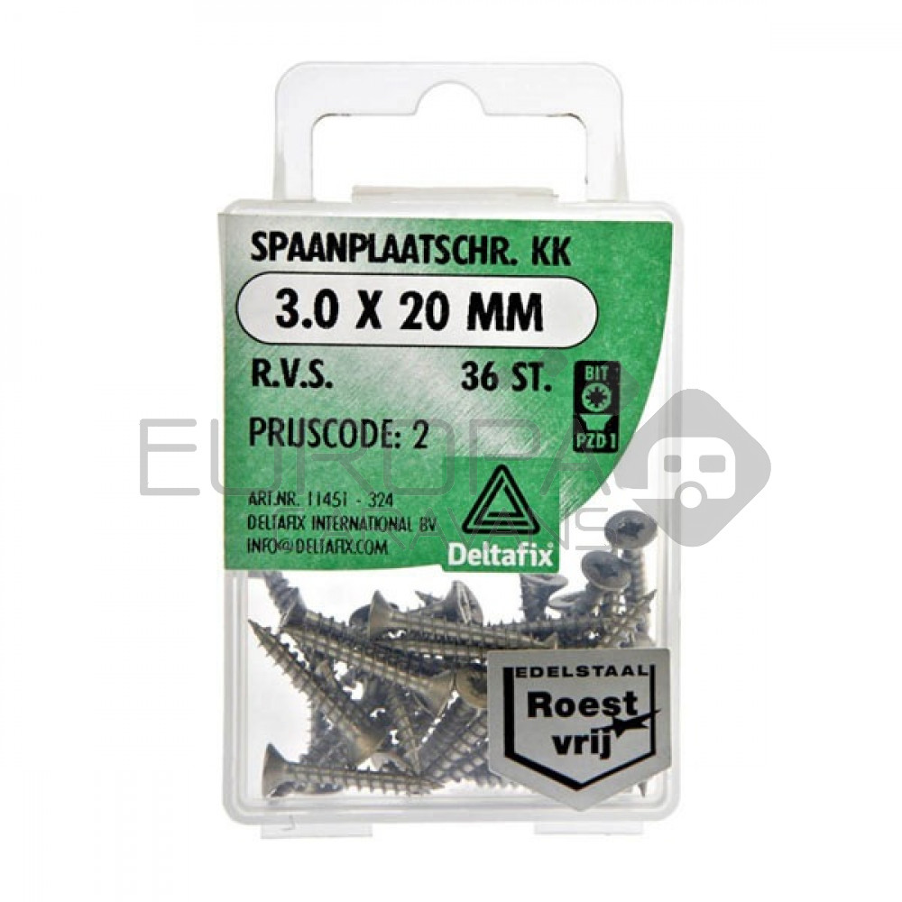 Deltafix Spaanplaatschroef KK RVS 3.0x20mm Set 36st