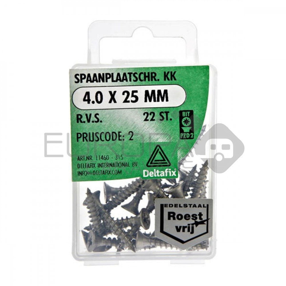 Deltafix Spaanplaatschroef KK RVS 4.0x25mm Set 22st