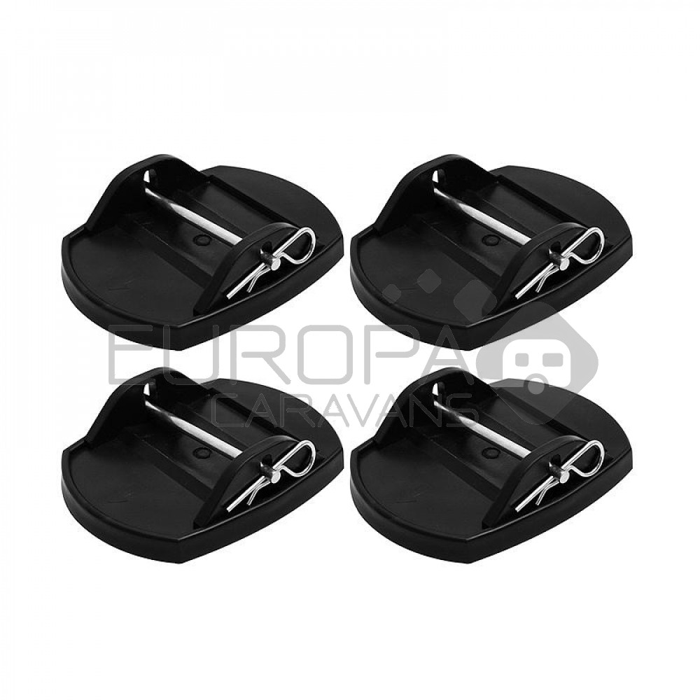 Onderlegschijven geleverd met stalen pennen voor onder de uitdraaisteunen van de caravan. Voorkomt zo het wegzakken of wegglijden van de steunen. De schijven kunnen tijdens het rijden blijven zitten.