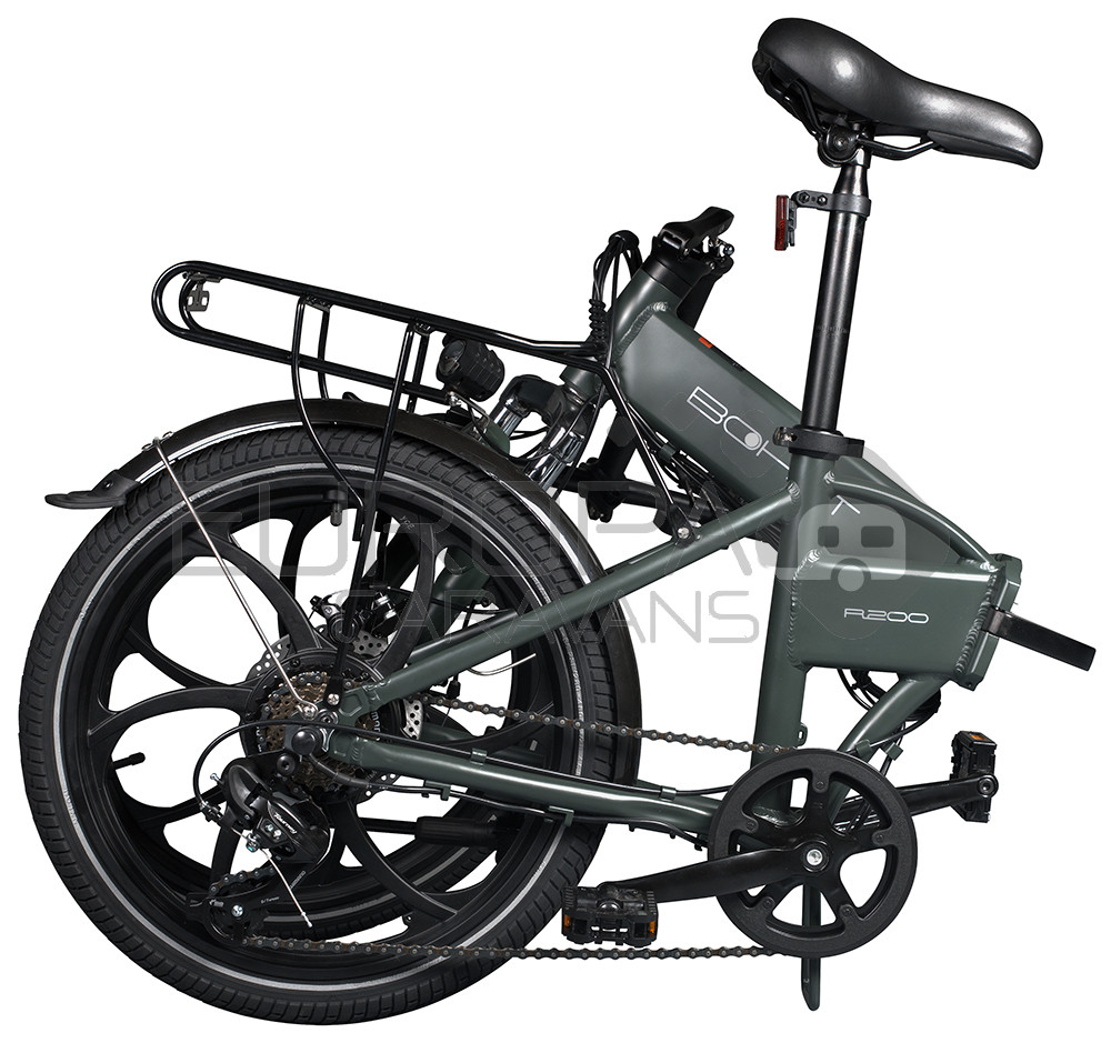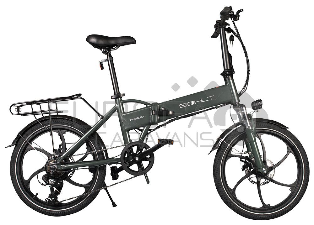 De Bohlt R200 is een elektrische vouwfiets met 20 inch wielen die u gemakkelijk opvouwt. Deze vouwfiets is ideaal om mee te nemen op uw boot, camper, caravan zodat je ook op je vakantie bestemming fijn kan fietsen. Het gewicht van de fiets is 24.8kg inclusief accu. De fiets is verder voorzien van 6 Shimano versnellingen en een kleine bagagedrager. Deze vouwfiets heeft een maximale snelheid van 25km/u en een actieradius van 45km (stand 1). Heeft een 3 speeds trapondersteuning, met schijfremmen voor en achter. De accu is in 5 uur opgeladen.