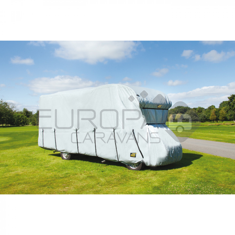 Camperhoes gemaakt van duurzaam non-woven materiaal en ademende stof die uit 4 lagen bestaat. De voor- en achterzijde zijn voorzien van spanbanden van 3.8cm breed. De twee ritsen aan elke kant vergemakkelijken zowel de installatie als de toegang tot de camper. Wordt geleverd in een draagtas.