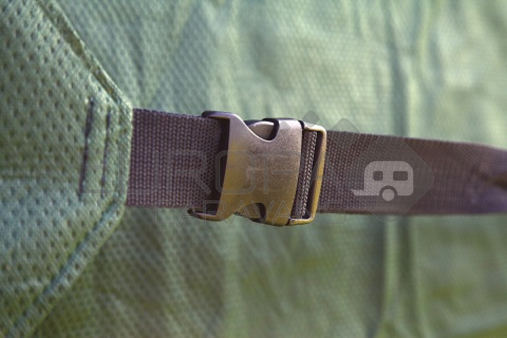 Caravanhoes gemaakt van duurzaam non-woven materiaal en ademende stof die uit 4 lagen bestaat. De voor- en achterzijde zijn voorzien van spanbanden van 3.8cm breed. De twee ritsen aan elke kant vergemakkelijken de toegang tot de caravan. Wordt geleverd in een draagtas.