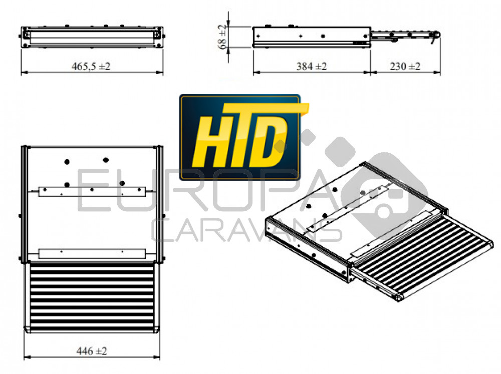 Het Sliding Step System is volledig gemaakt van aluminium. Het dragermateriaal is Delrin (Delrin® acetaalhomopolymeer polyoxymethyleen POM) is het ideale materiaal voor onderdelen ter vervanging van metaal, waarbij een lage wrijving en slijtvastheid worden gecombineerd met de hoge stijfheid en sterkte die vereist zijn voor dergelijke toepassingen). De Bosch-motor met 18W die in onze trapsystemen wordt gebruikt, heeft beschermingsklasse IP54. De motor is speciaal beschermd tegen water. Trapplaat gemaakt van gegolfd geanodiseerd aluminium. Het stepsysteem wordt compleet met montage set geleverd. Op deze manier is een gemakkelijke installatie mogelijk.