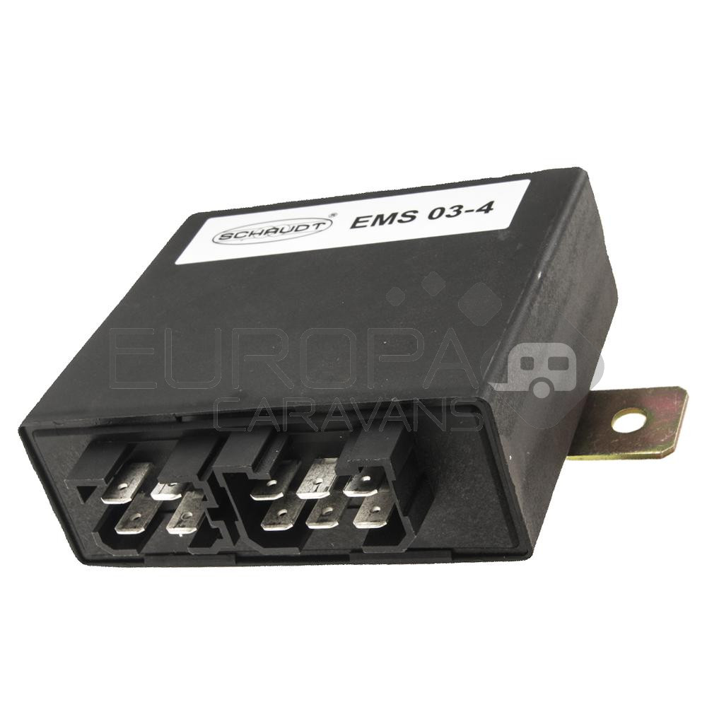 De Schaudt EMS03-4 is een relais voor elektronische opstappen om aan te sturen. De EMS03-04 kan gebruikt worden voor opstappen met de volgende stroom verbruiken: - Motorvergrendeling ca.11A - Schakelstroom EMS03-4 uit 7.5 + 10%. - Als de motor niet binnen 5 seconden uitgeschakeld wordt, dan treedt de EMS03-4 in werking.
