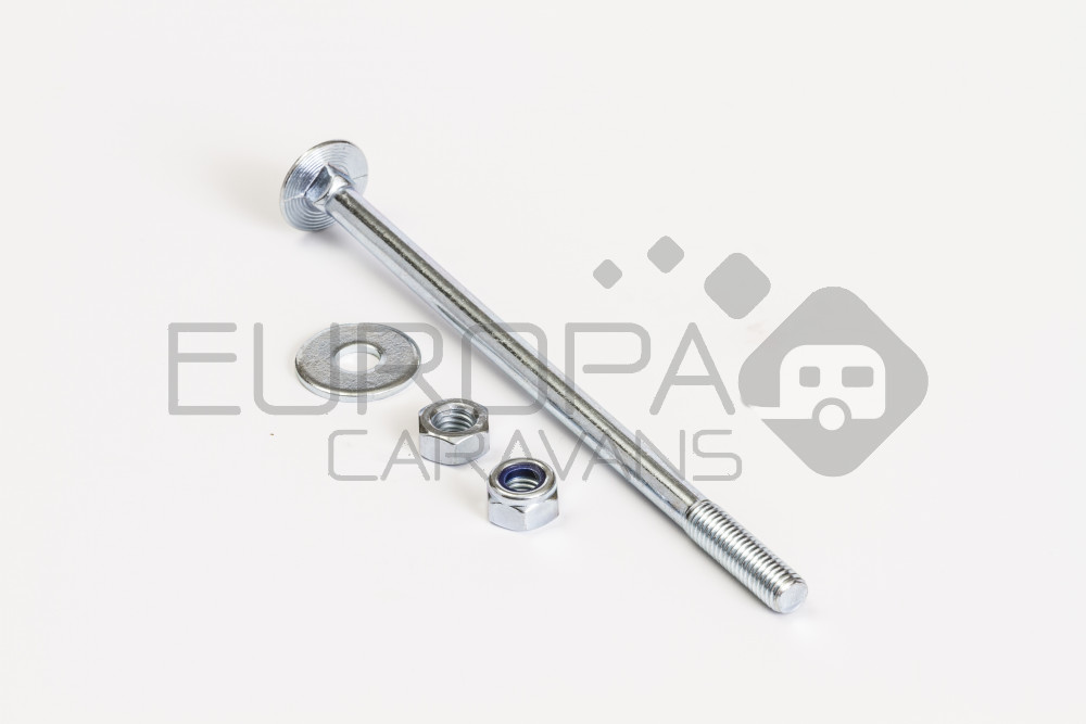 Het montageset wordt gebruikt om de onderlegschijven aan de uitdraaisteun van de caravan te monteren. Bij een compleet onderlegschijvenset wordt het montageset uiteraard meegeleverd. Dit montageset bestaat uit 2 lange bouten met bijbehorende moeren en afstandsringen. Dit set is geschikt om 2 onderlegschijven te monteren.