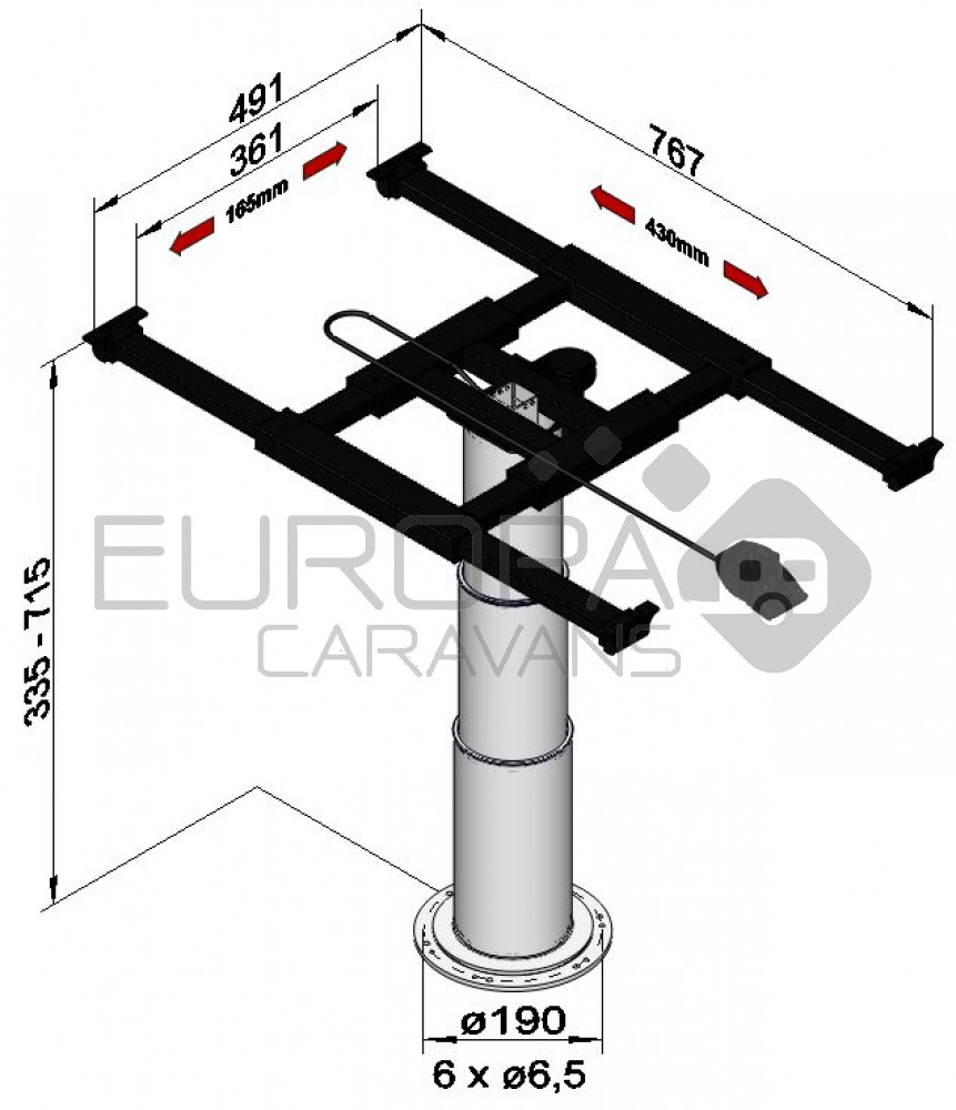 De Ilse lifttafelpoot is variabel in hoogte in te stellen met een druk op de knop. De voet is 360 graden draaibaar en het blad is in de lengte en zijwaarts verschuifbaar.