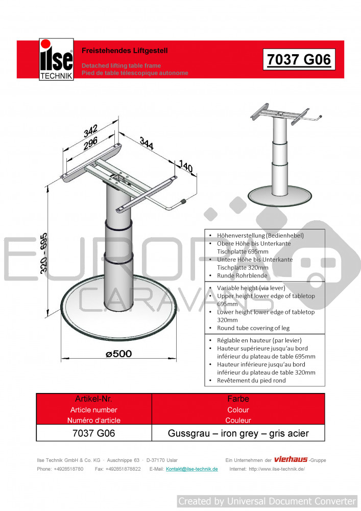 De Ilse vrijstaande lifttafelpoot is in hoogte in te stellen met een hendel.