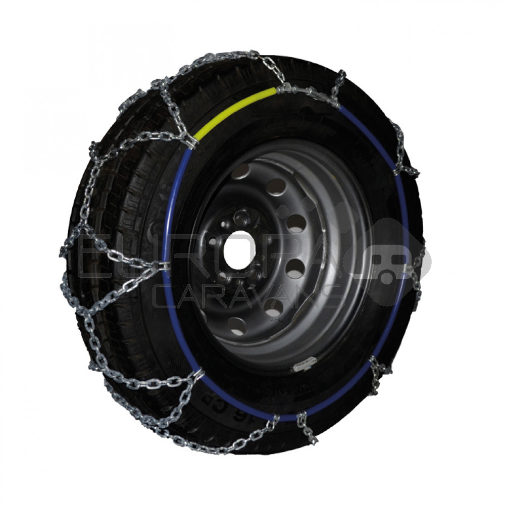 Sneeuwkettingen speciaal voor campers. Voldoen aan de eisen van de Oostenrijkse Ö-norm (V5117). Maat 1: 215/70-15, 215/75-14, 215/75-15, 225/70-15, 195/75-16, 215/65-16 Maat 2: 225/60-17, 225/55-18, 225/65-17, 255/45-18, 225/70-15, 225/65-16, 235/55-17, 225/75-15, 255/60-15 Maat 3: 235/75-15, 225/65-17, 235/55-18, 215/75-16, 225/70-17, 225/75-16, 235/65-16 Maat 4: 205/75-16, 215/60-17, 215/70-16, 225/55-17, 235/60-16