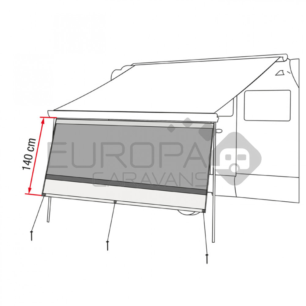 De Fiamma Blocker is een comfortabel voorpaneel welke bescherming biedt tegen zon en lichte regen. De Blocker heeft een hoogte van 140cm, daardoor blijft er een ruimte over tussen onderkant doek en de grond. Wordt geleverd met koorden en haringen.