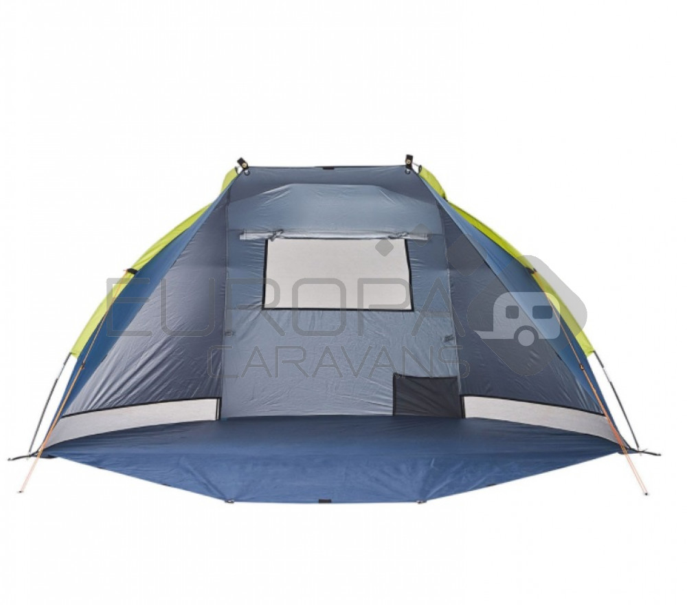 Deze snel op te zetten strandtent biedt perfecte beschutting op het strand en tijdens picknicks. De voorzijde van de tent is eenvoudig af te sluiten.