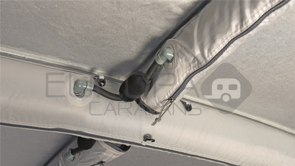 De Voortent Tide is een opblaasbare tent verkrijgbaar in 4 maten. De voortent wordt veilig aan uw caravan bevestigd met behulp van een handig, paalvrij sealing systeem. Naast het feit dat de tent licht en luchtig is heeft het een extra voordeel dat ze aan de voorkant helemaal geopend kan worden. Je kan de tent uitbreiden met de uitbouw of slaapcabine. Of nog te verlengen met een luifel M of L , dit kan alleen bij de 320, 380 en of 440.