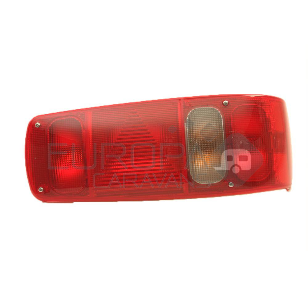Inbouw achterlicht met remlicht, knipperlicht, zijmarkering met reflector en driehoek reflector. Rechter uitvoering. Voor horizontale inbouw. Voor caravan of aanhanger.