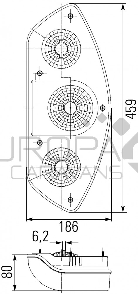 Caraluna Vertikal is voorzien van de functies: achterlicht, remlicht, knipperlicht en mistlicht. Linkerzijde voor verticale montage.
