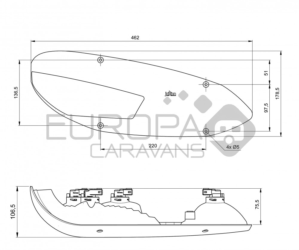 Jokon Achterlicht L3000 Rem/ Knipper/ Mist/ Achteruitrij/ Driehoek Reflector Links