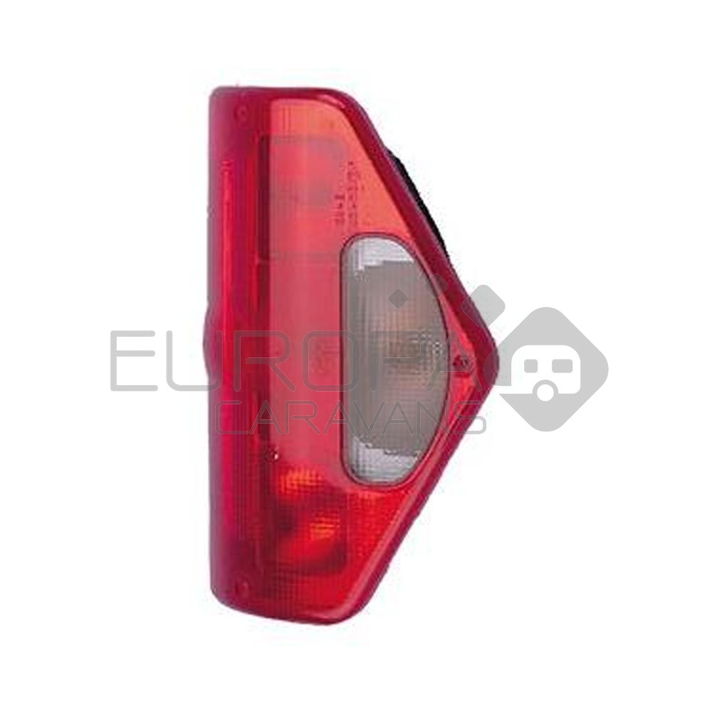 Achterlicht inbouw serie 2000. Loopt rond aan de linkerzijde naar de zijkant van de caravan. Voorzien van vlakke aansluitstekkers.