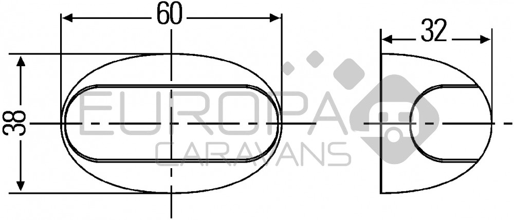 Markering ovaal opbouw LED met helder lampglas en een zwart kunststof lamphuis. De lamp geeft helder rood licht doordat het binnenglas rood is. Voor horizontale opbouw. Met 50cm kabel.